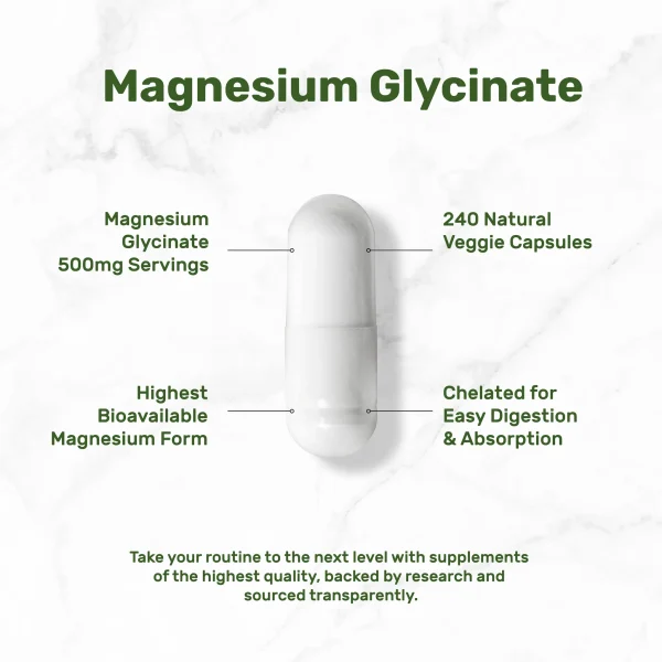 • Dosage & Servings – Only 1 vegetarian capsule per serving to receive 500mg of pure magnesium glycinate. Each bottle offers 240 veg capsules and up to an 8-month supply.