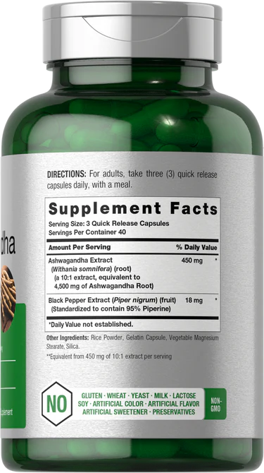 We’ve created a unique Ashwagandha formula inspired by hundreds of years of Ayurvedic tradition! Our max strength supplement contains 450mg of Ashwagandha Root (a 10:1 extract), equivalent to 4,500 mg per serving, plus Black Pepper Extract for added support.**  It’s gluten free and non-GMO, made without artificial flavor or sweetener, making it a perfect choice for adult men and women everywhere!