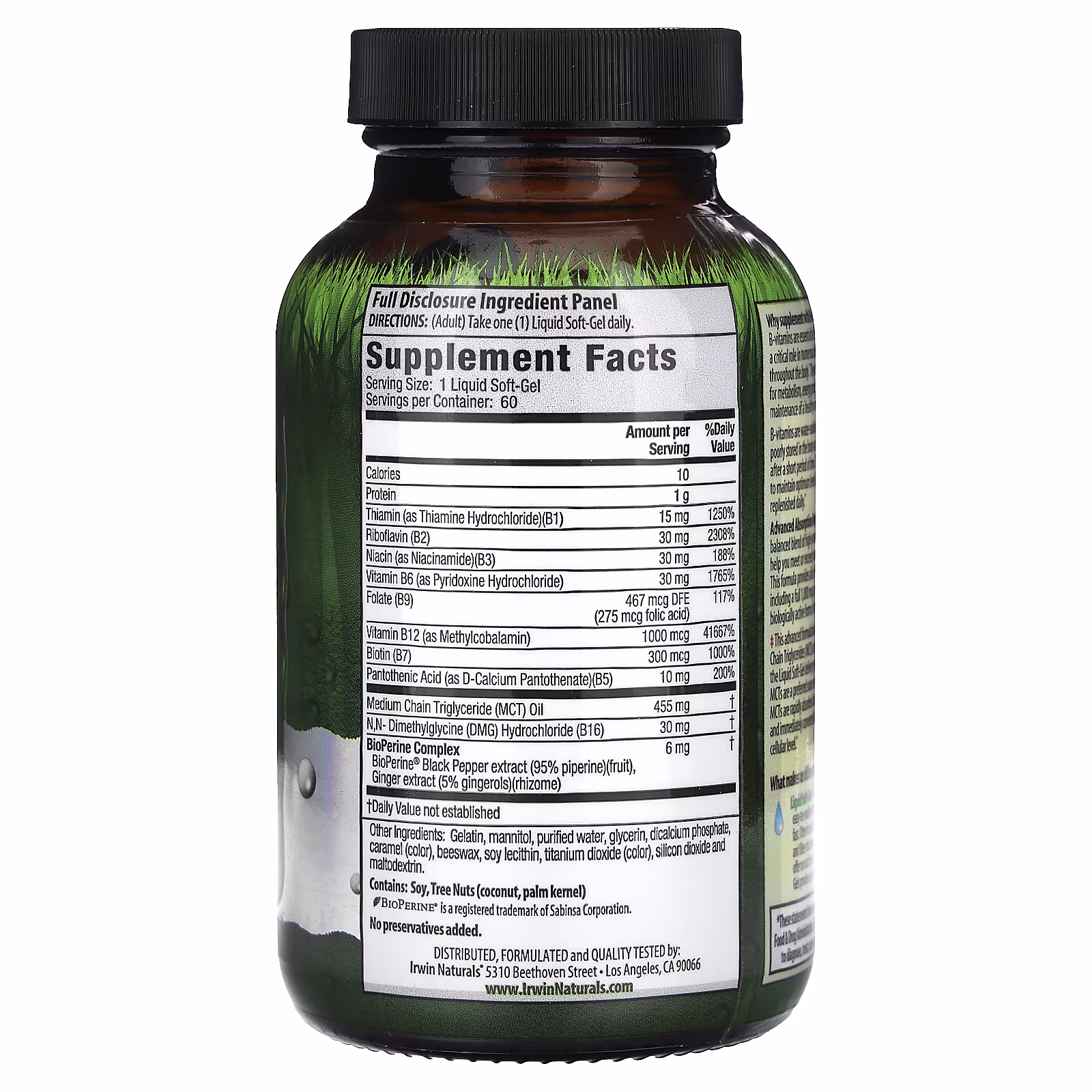 Irwin Naturals, Mega B-Complex with Quick Energy MCT’s, 60 Liquid Soft-Gels