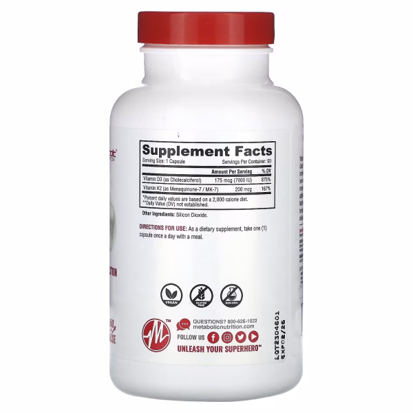 Metabolic Nutrition® Vitamin D3+K2, 90 Capsules